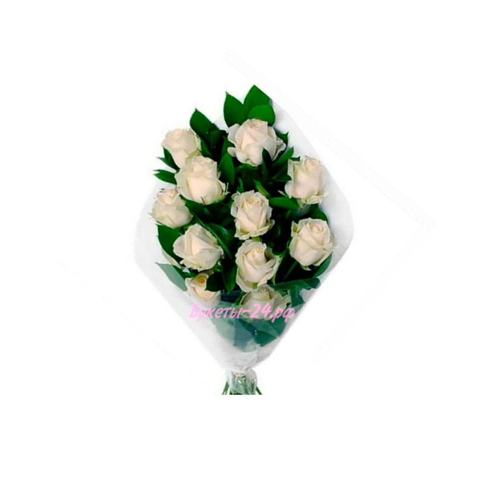 Каскадный букет из белых роз в белой упаковке 11 шт.